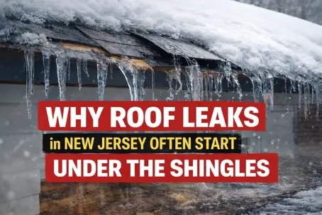 Esta guía explica por qué las goteras en los tejados suelen comenzar debajo de las tejas, cómo el clima de Nueva Jersey contribuye al problema y qué papel desempeñan las barreras contra el hielo y el agua en los sistemas de techado modernos.