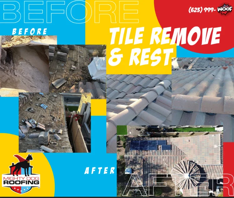 Tile roofs are built to last—but the underlayment beneath them is not. Our tile re-roof process is designed to protect your home while preserving the beauty of your existing tile. Mighty Dog Roofing carefully removes, restores, and reinstalls your tile while installing a brand-new waterproof roofing system underneath.