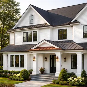- If you want a premium look, consider composite slate or copper accents