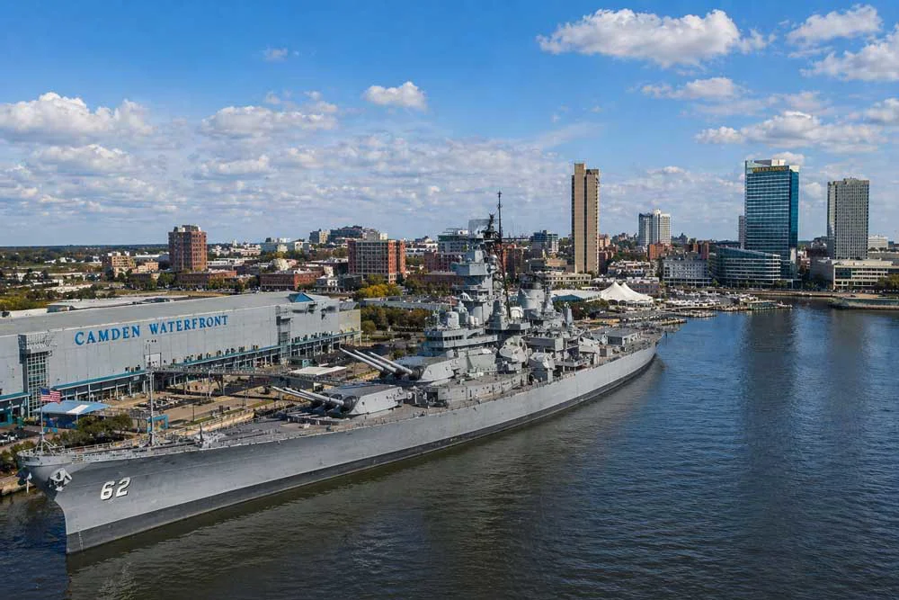 The USS New Jersey — BB-62 — earned more combat stars than any battleship in United States history. She served in World War II, Korea, Vietnam, and Lebanon, and was recommissioned four separate times. She is now permanently docked on the Camden waterfront as a museum open to the public.